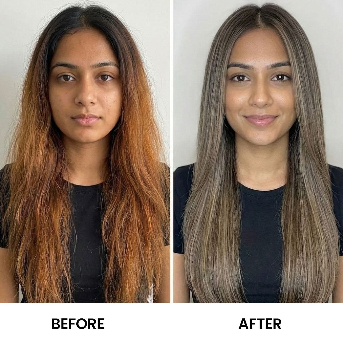 Our "Hair Brilliance" range is specifically designed for color correction, aligning with our mission to minimize consumers' exposure to chemicals and harsh treatments. Traditional hair dyeing, coloring, or bleaching often involves chemical processes that can be detrimental to the health of your hair.
